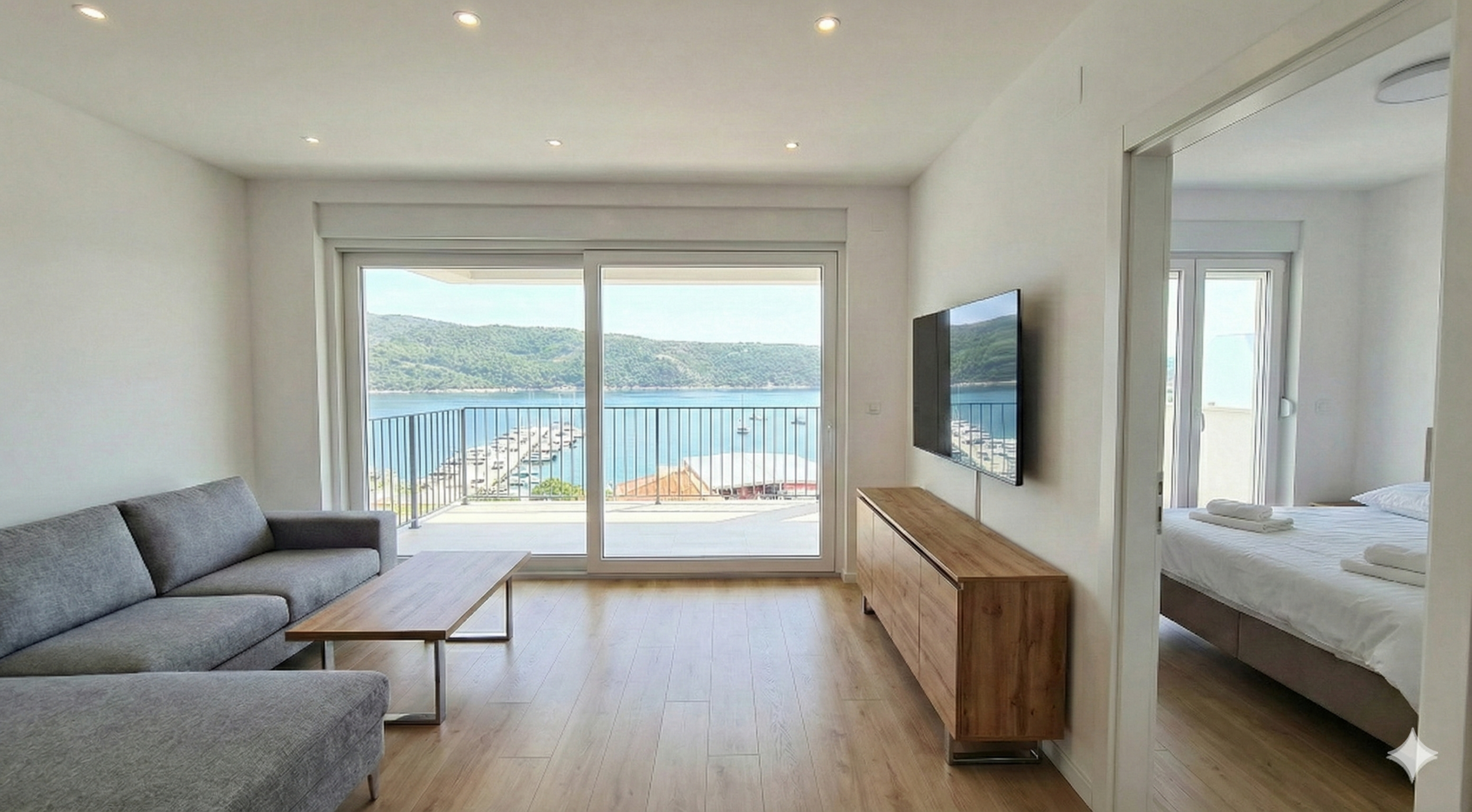 Vier exklusive Apartments in einem Neubau, der modernes Design mit der zeitlosen Schönheit Kampors verbindet. Erleben Sie diesen Ausblick jeden Morgen.
